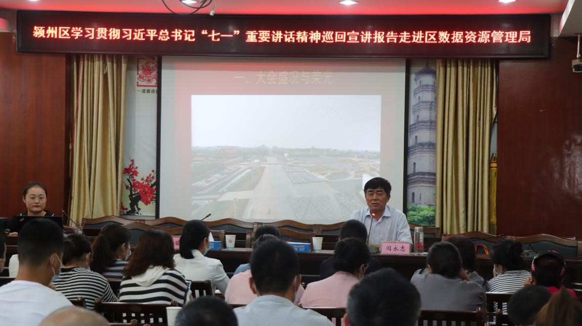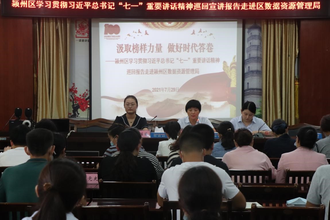 7月29日下午,潁州區學習貫徹習近平總書記“七一”重要講話精神巡回報告團走進潁州區數據資源管理局,區數據資源管理局機關及政務大廳、區婦聯、區殘聯、區黨史辦等單位100余人參加會議。