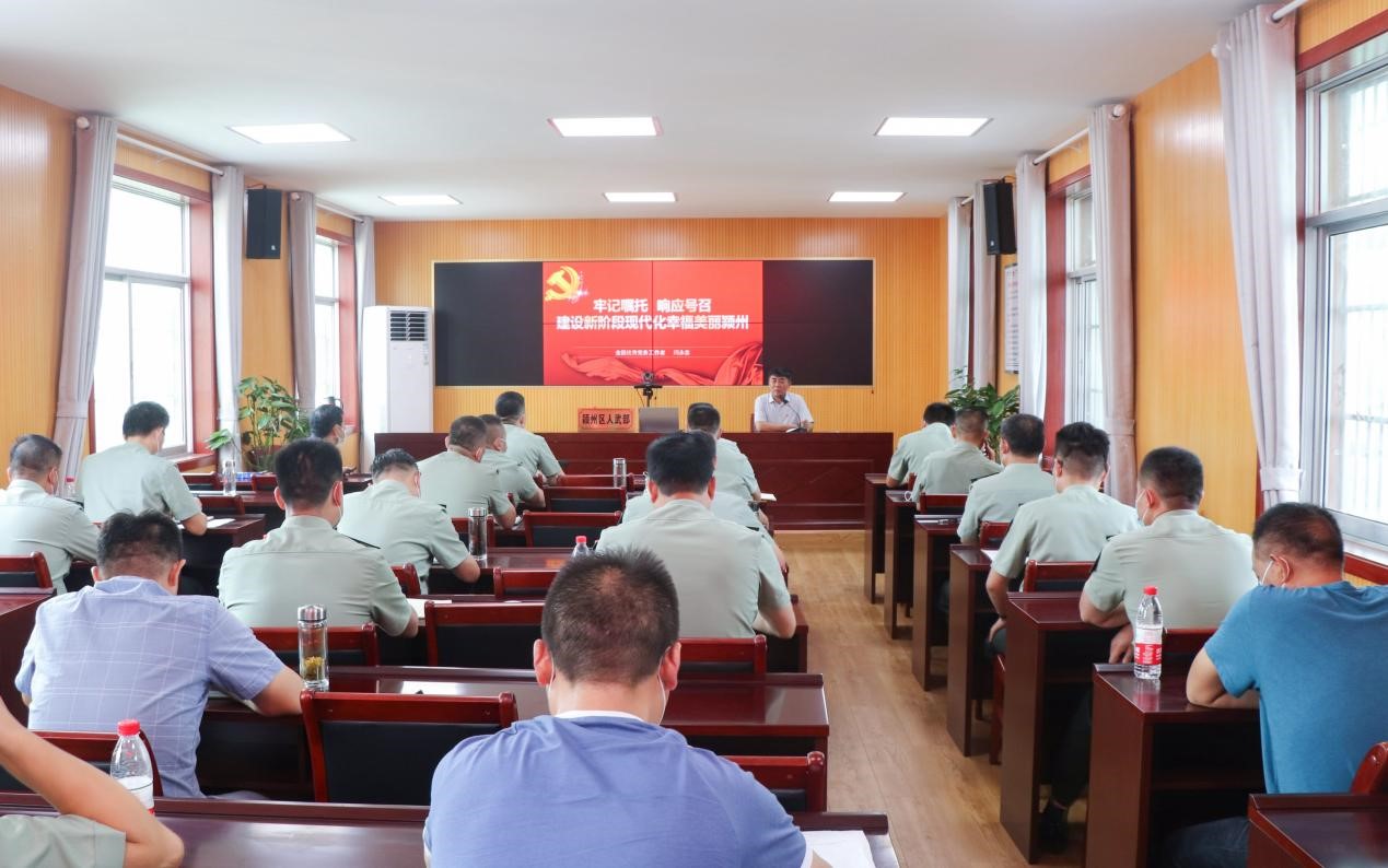 為強化軍隊系統黨員干部對習近平總書記“七一”重要講話精神的理解,2021年8月18日下午,潁州區人武部邀請區委黨史學習教育宣講團為人武部干部職工和全區各鄉鎮街道及轄區高校專武干部宣講“七一”重要講話精神。區委常委、區人武部部長鄭波出席報告會并講話。