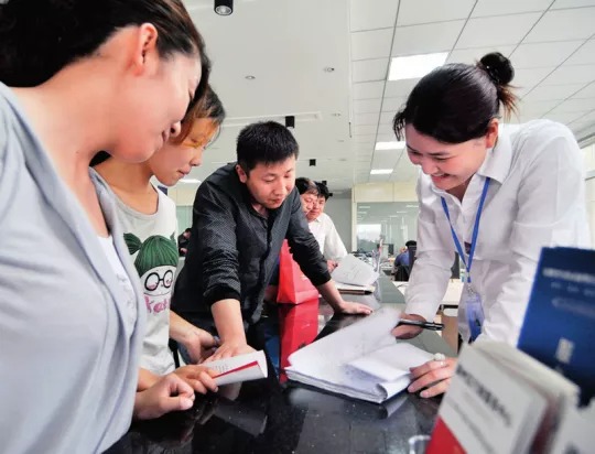 阜陽市潁州區政務服務中心工作人員為市民熱心服務 楊杰攝