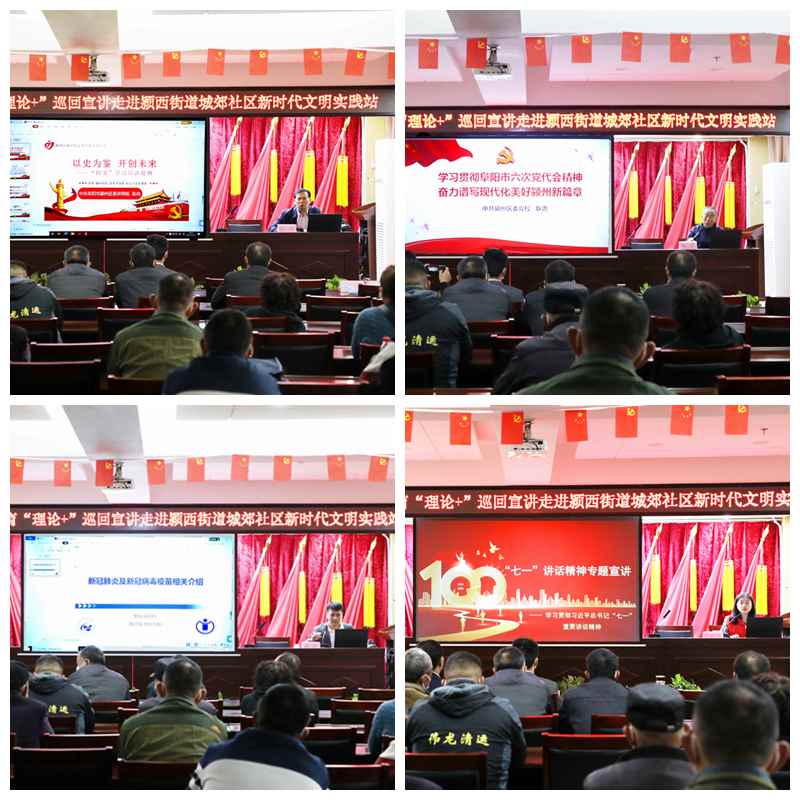 10月10日上午,潁州區黨史學習教育“理論+”巡回宣講團走進潁西街道城郊社區新時代文明實踐站,社區黨員群眾100余人參加學習。