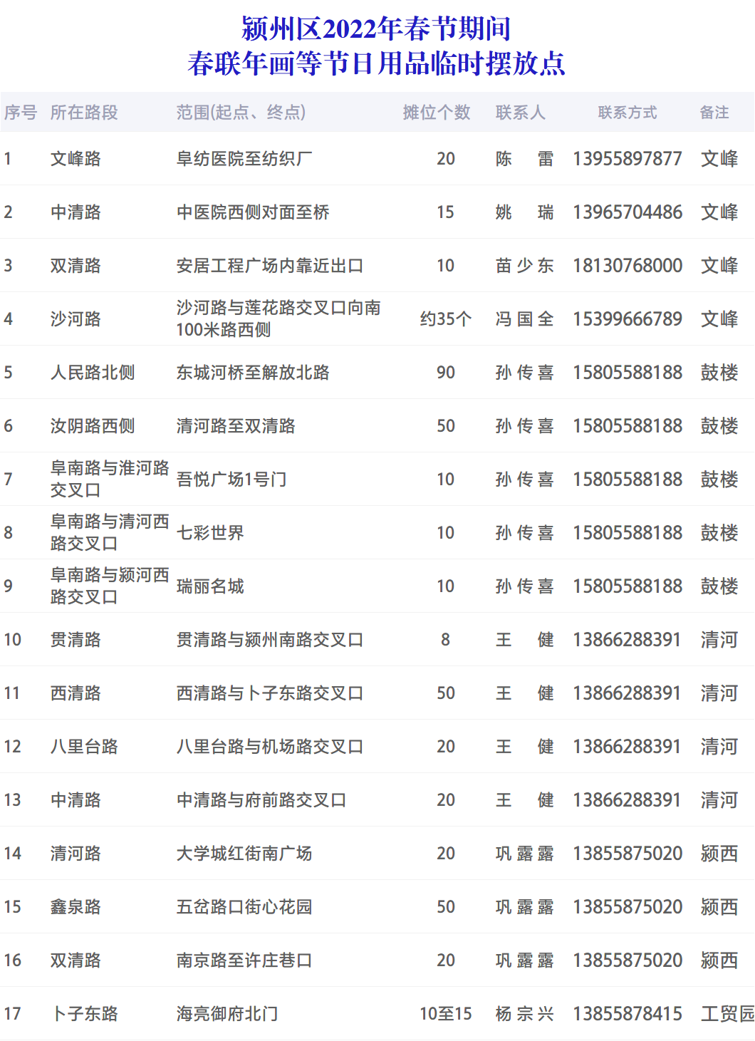 潁州區公布春節期間節日用品臨時擺放點
