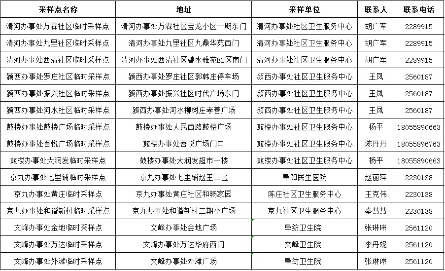 15個!潁州區臨時新冠病毒核酸檢測采樣點公布