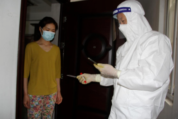 4月5日是核酸檢測(cè)的第一天,排隊(duì)檢測(cè)的居民特別多,“我年齡很大,腿腳不方便,我的核酸檢測(cè)該怎么辦?”“您別急,我們現(xiàn)在上門來為您做核酸檢測(cè)!”丁麗和“大白”醫(yī)護(hù)人員迎著炎熱在小區(qū)穿梭,登門為14位行動(dòng)不便的居民做檢測(cè)。忙完登門檢測(cè),丁麗又拿著擴(kuò)音喇叭和小伙伴一起“掃樓”,提醒居民應(yīng)檢盡檢,可怕的病毒和酷熱的天氣根本難不住凝聚的人心和無所畏懼的基層干部。