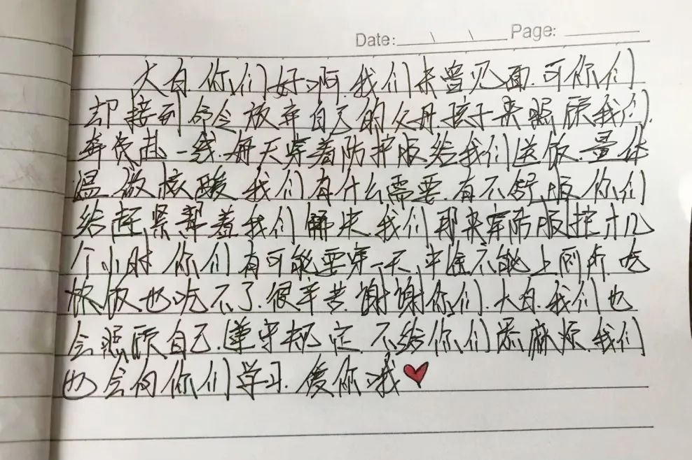 “或許你們也正處于青春年少,在這危難時刻本該被家人關心呵護的,你們卻來關心我們,又或許你已經是我們口中的叔叔阿姨,在家中很需要你們的時候,舍小家為大家,你們辛苦了!”