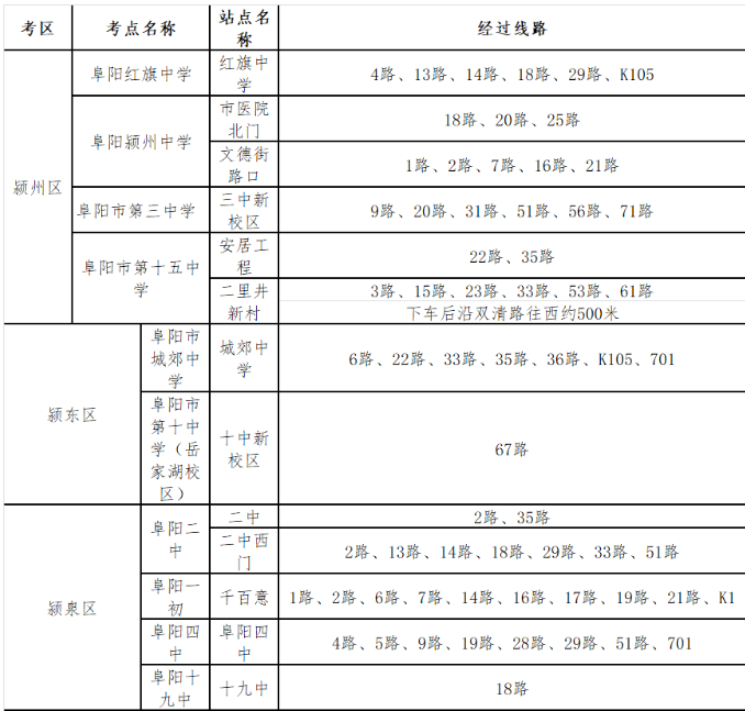 阜陽高考考點公交線路來了!