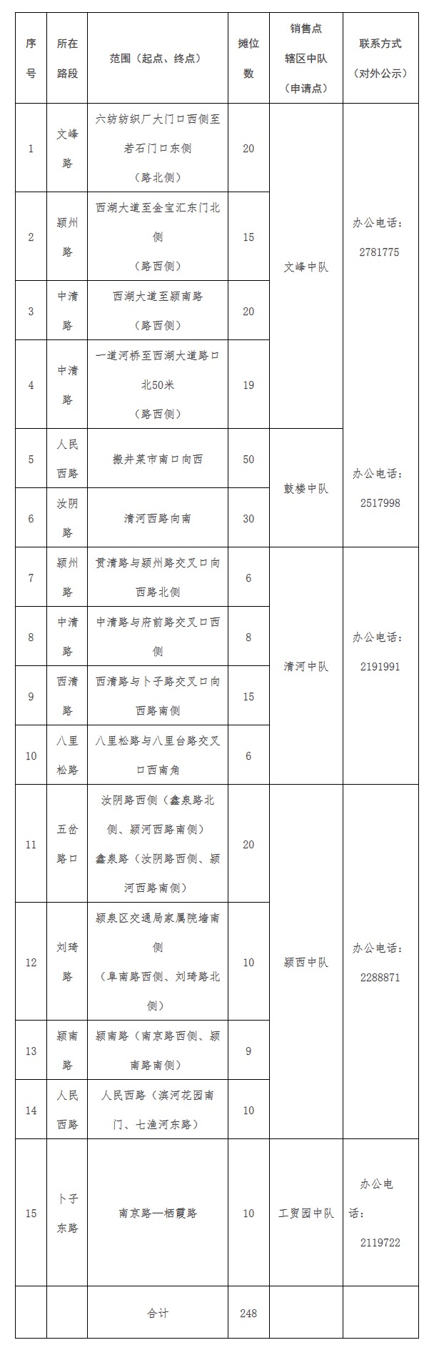 為給瓜農(nóng)銷售西瓜、城區(qū)居民購買西瓜提供便利,做好城市管理服務(wù)的“最后一公里”,積極引導(dǎo)瓜農(nóng)規(guī)范經(jīng)營,加強(qiáng)對臨時西瓜銷售攤點(diǎn)秩序的監(jiān)管,結(jié)合疫情防控現(xiàn)狀,根據(jù)區(qū)城管執(zhí)法局上報的臨時西瓜銷售攤點(diǎn),依據(jù)《阜陽市城市市容和環(huán)境衛(wèi)生管理條例》第二十三條,同意在潁州城區(qū)設(shè)置臨時西瓜銷售點(diǎn)15處(見附件),現(xiàn)就有關(guān)事項通知如下: