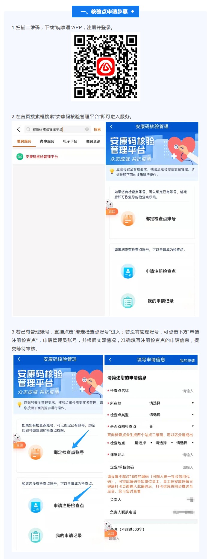 一、規(guī)范設(shè)置“場(chǎng)所碼”。全區(qū)各重點(diǎn)社會(huì)服務(wù)和管理機(jī)構(gòu)、商貿(mào)場(chǎng)所、服務(wù)業(yè)場(chǎng)所、公共場(chǎng)所、公共交通工具以及小區(qū)等居民活動(dòng)場(chǎng)所,必須設(shè)置場(chǎng)所碼,為規(guī)范使用和統(tǒng)計(jì)掃碼情況,原則上每個(gè)單位、獨(dú)立場(chǎng)所設(shè)置1個(gè)場(chǎng)所碼,區(qū)域較大,比較分散的單位和場(chǎng)所可根據(jù)需要設(shè)置多個(gè)場(chǎng)所碼。場(chǎng)所碼應(yīng)張貼于出入口等醒目位置,無(wú)場(chǎng)所碼的立即在“皖事通”APP進(jìn)行申請(qǐng)。