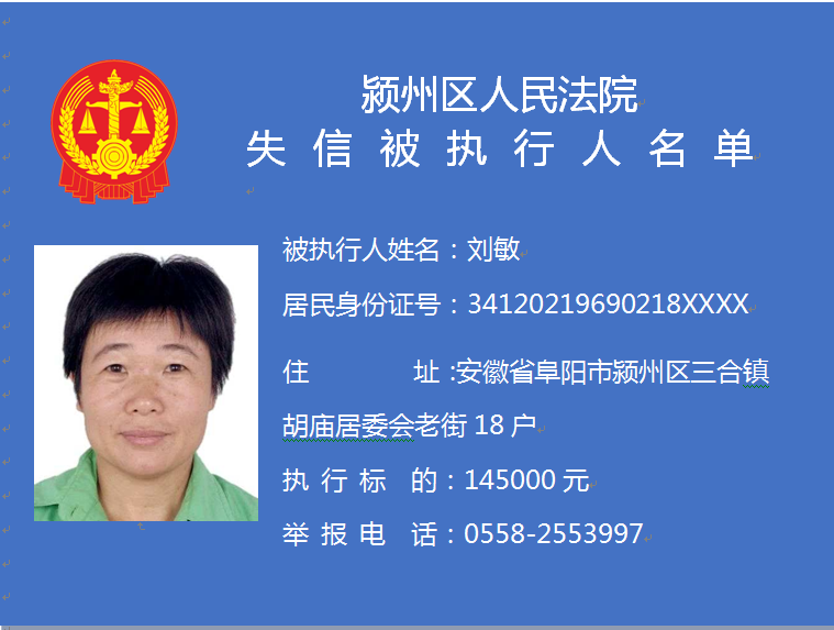 潁州區(qū)人民法院失信被執(zhí)行人信息曝光臺