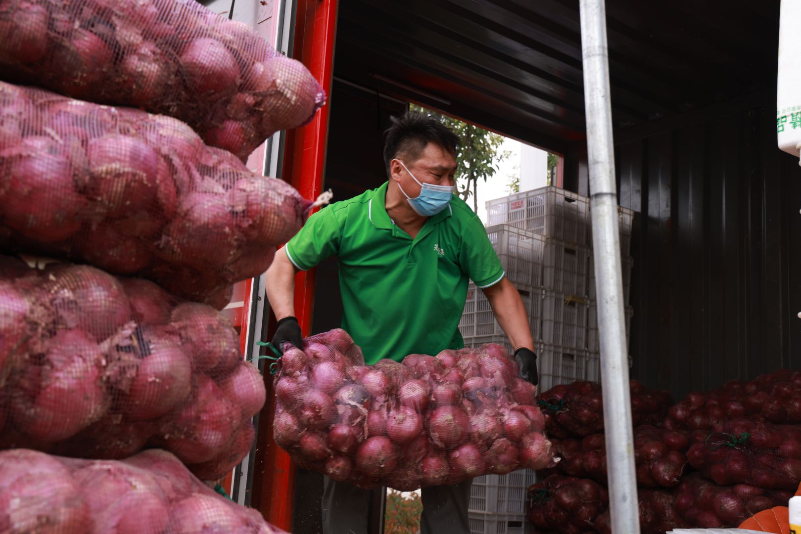 市場每天安排專人對運送車輛和農副產品進行清潔消毒,嚴格查驗進貨渠道,確保蔬果質量有保障。