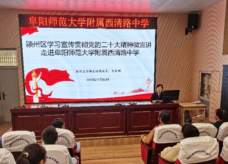 近日,潁州區學習宣傳黨的二十大精神巾幗微宣講走進阜陽師范大學附屬西清中學。