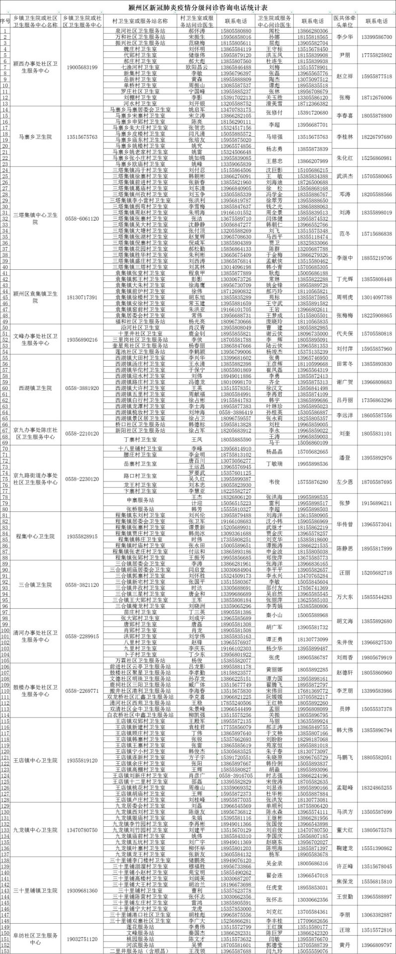 附件:潁州區新冠肺炎疫情分級問診咨詢電話公示
