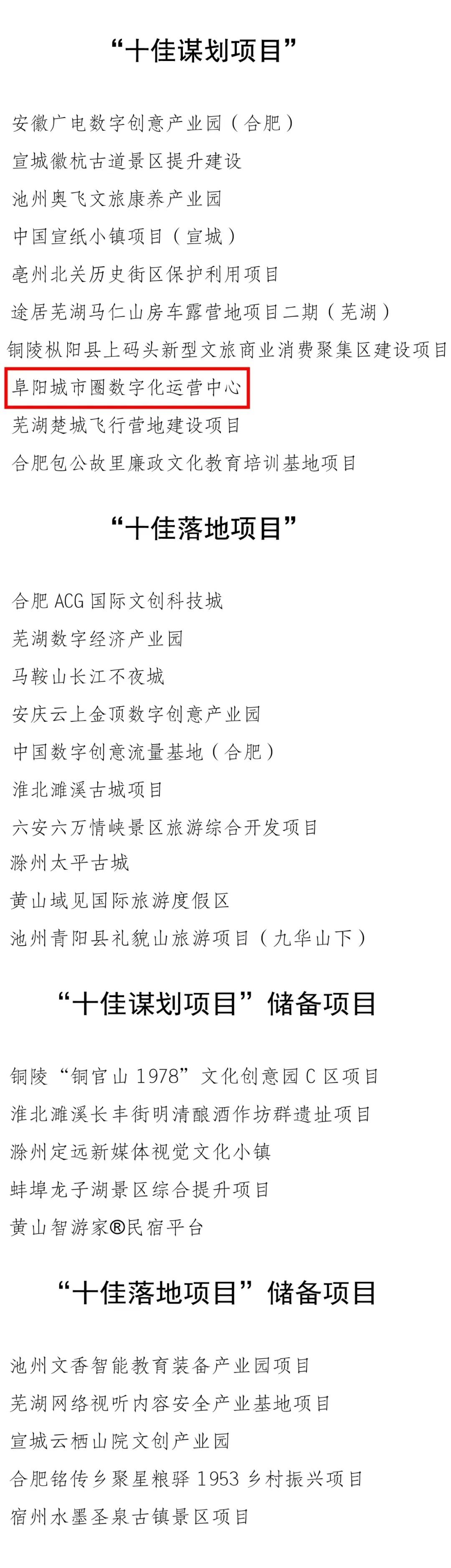 根據《關于開展2022年安徽省數字創意和文旅產業“雙十佳項目”評選活動的通知》,我廳組織專家對各市申報材料進行了合規性審查、評選,并組織初審通過項目開展路演,形成入選名單。現將入選結果予以公示,如有異議,請聯系我廳產業發展處。 公示時間:2022年12月19日-12月25日 聯系電話:0551-63608418 附件:2022年安徽省數字創意和文旅產業“雙十佳項目”入選名單 安徽省文化和旅游廳 2022年12月19日 附件: