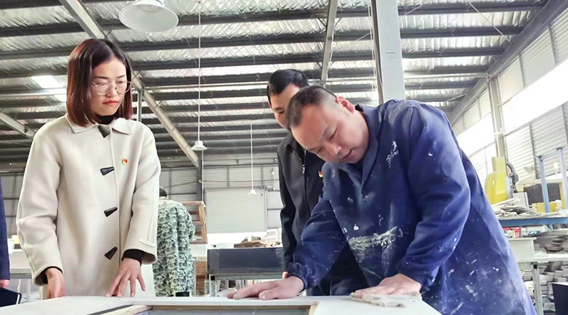 劉曉妮在調(diào)研鄉(xiāng)村產(chǎn)業(yè)發(fā)展。阜南縣委宣傳部供圖