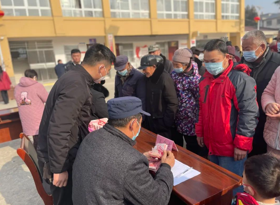1月11日上午,潁州區(qū)三合鎮(zhèn)掩龍村舉辦分紅活動,向612名60歲以上老年人發(fā)放紅包122400元。這也是該村第三年向村里老年人發(fā)放“新年紅包”,每人200元。