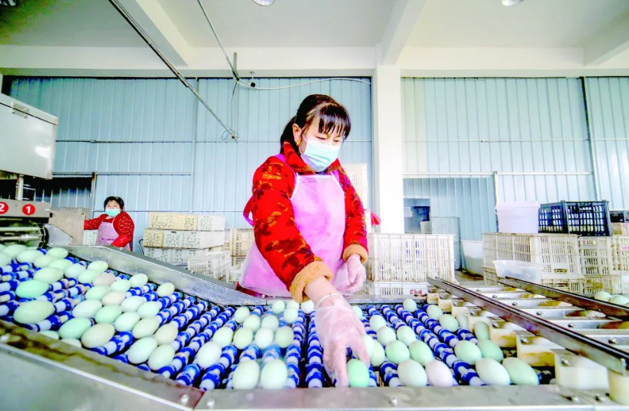 村集體有錢了,村民腰包也跟著鼓起來。劉桂芝入職村里的阜陽痛快食品有限公司兩年時間,在鴨蛋加工流水線上工作,每月能拿到三四千元的工資。既能掙錢,又能照顧家庭,她對家門口的這份工作很滿意。