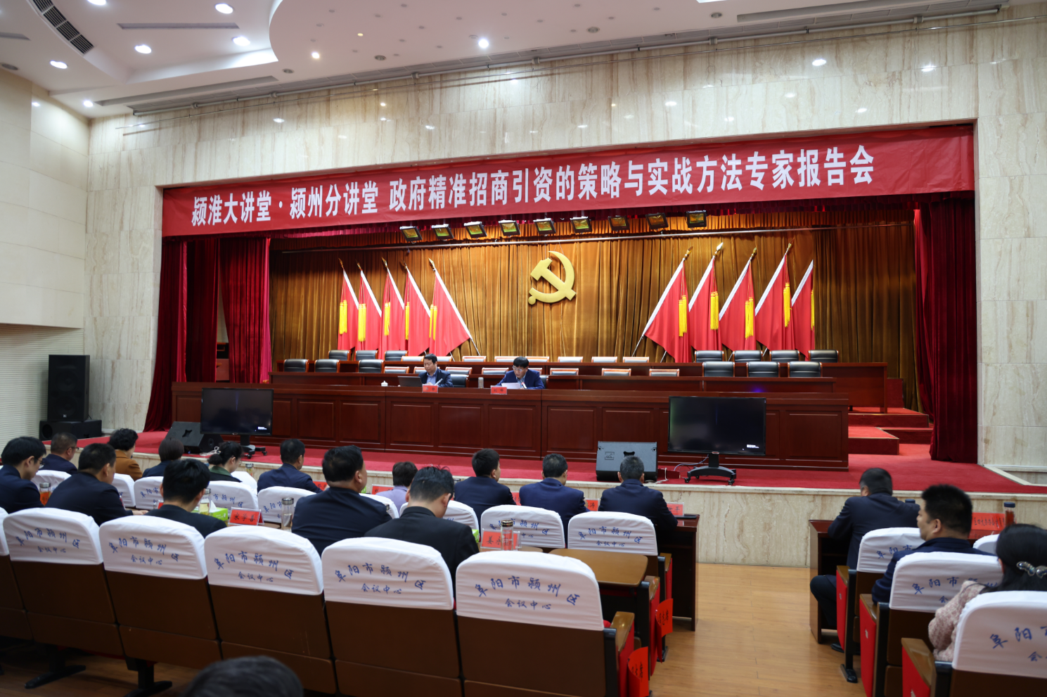 4月26日,潁州區舉辦潁淮大講堂·潁州分講堂-政府精準招商引資的策略與實戰方法專家報告會。區委副書記、區長劉峰主持會議,區委理論學習中心組成員、區其他四大班子成員,區直有關單位主要負責同志,區九大產業鏈牽頭單位班子成員、工作專班及相關單位主要負責同志、各鄉鎮街道黨政主要負責同志及分管招商引資工作負責同志參加報告會。