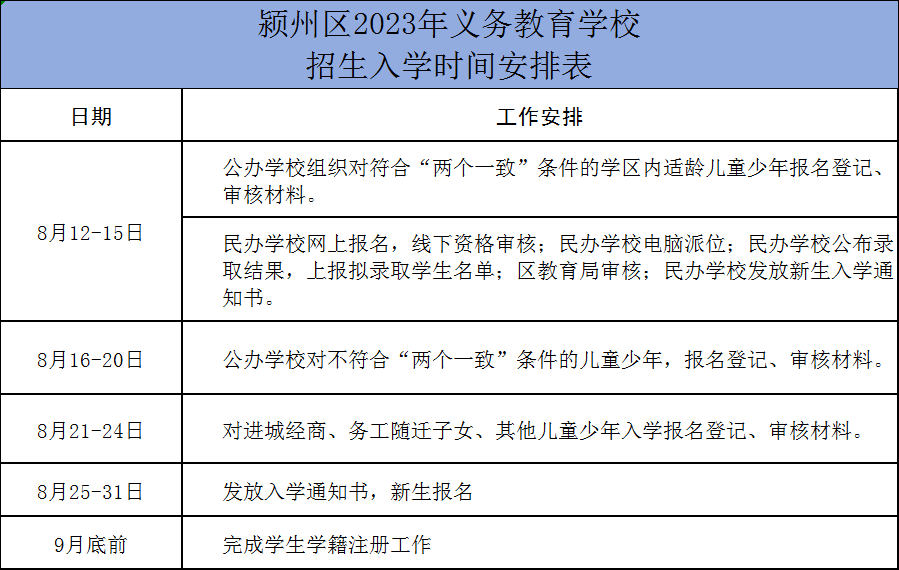 民辦義務教育學校應在潁州區范圍內招生,區教育局要統籌考慮規范民辦義務教育發展工作,合理下達招生計劃,優先滿足潁州區范圍內學生入學需求。