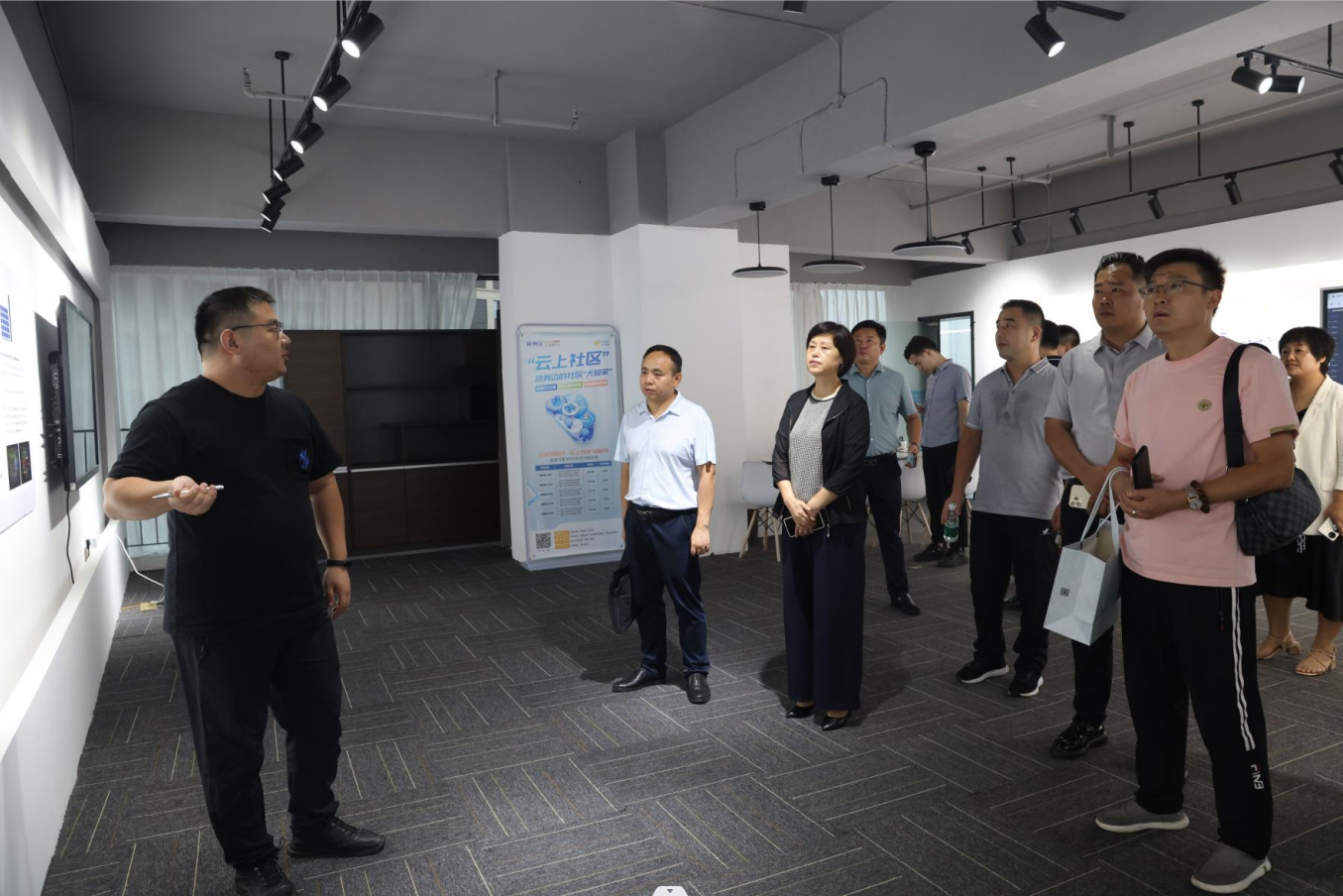 在產業園入駐企業浪潮誠摯、輝一智能、態度信息技術公司,大家聽取了企業發展介紹,觀摩了部分場景應用及服務展示,與企業負責人進行了深入交流。