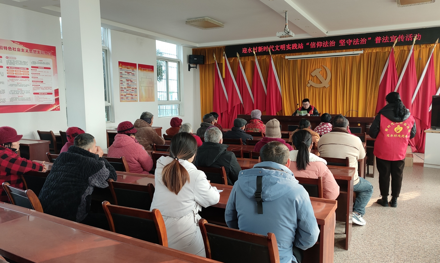 進一步強化居民法律意識,引導居民自覺學好用好《民法典》,用法律武器捍衛自己的合法權益。2024年1月9日,迎水村新時代文明實踐站開展“信仰法治 堅守法治”普法宣傳活動,轄區30名群眾參加。