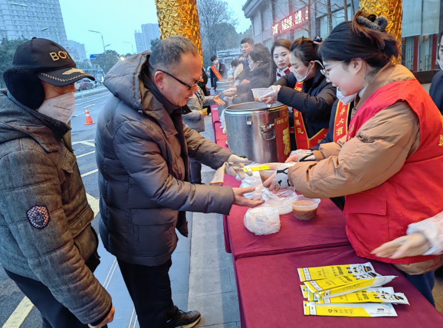 活動現場,志愿者們熱情地向大家講解著臘八節的深厚內涵與悠久歷史。與此同時,一道道精心熬制的臘八粥被端到居民們的手中,這不僅僅是一碗熱氣騰騰的美食,更是一份傳遞著關懷與祝福的心意。幾位環衛工人表示:“你們真是太貼心了,讓我們這些戶外工作者在寒冷的天氣里喝上一碗暖粥,真好!”現場居民們說,平日里生活節奏快,來不及煮粥,今天的臘八粥真是暖胃又暖心!現場氛圍其樂融融,分外溫馨。