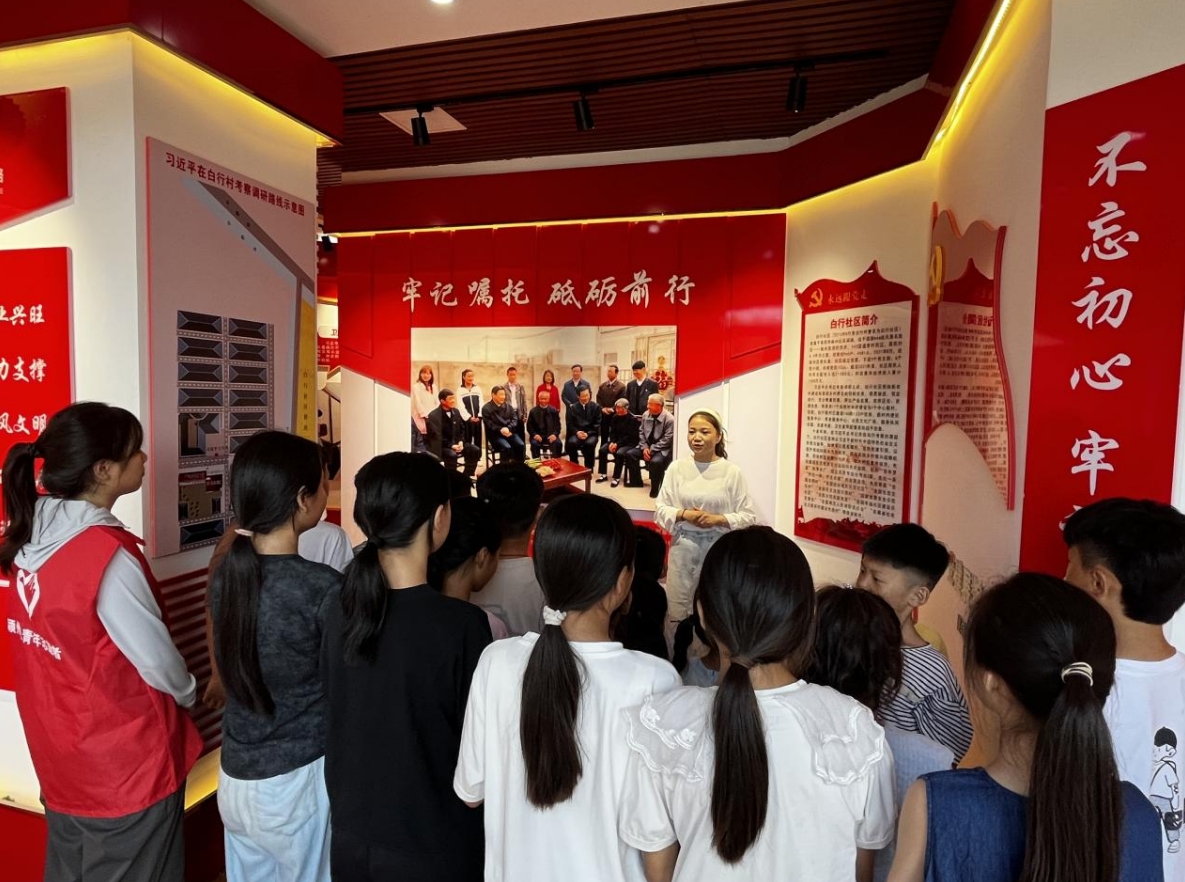 孩子們在志愿者的帶領下,走進白行社區黨建展館,共同開啟了一段難忘的紅色學習之旅。講解員聲情并茂地講述著白行人民牢記習近平總書記的殷殷囑托、砥礪奮進的艱苦歷程,整個活動過程中,孩子們積極參與,踴躍提問 ,一問一答間,不僅傳授了知識,更在孩子們心中種下了紅色的種子,激發了他們熱愛黨、熱愛祖國、熱愛家鄉的情感。