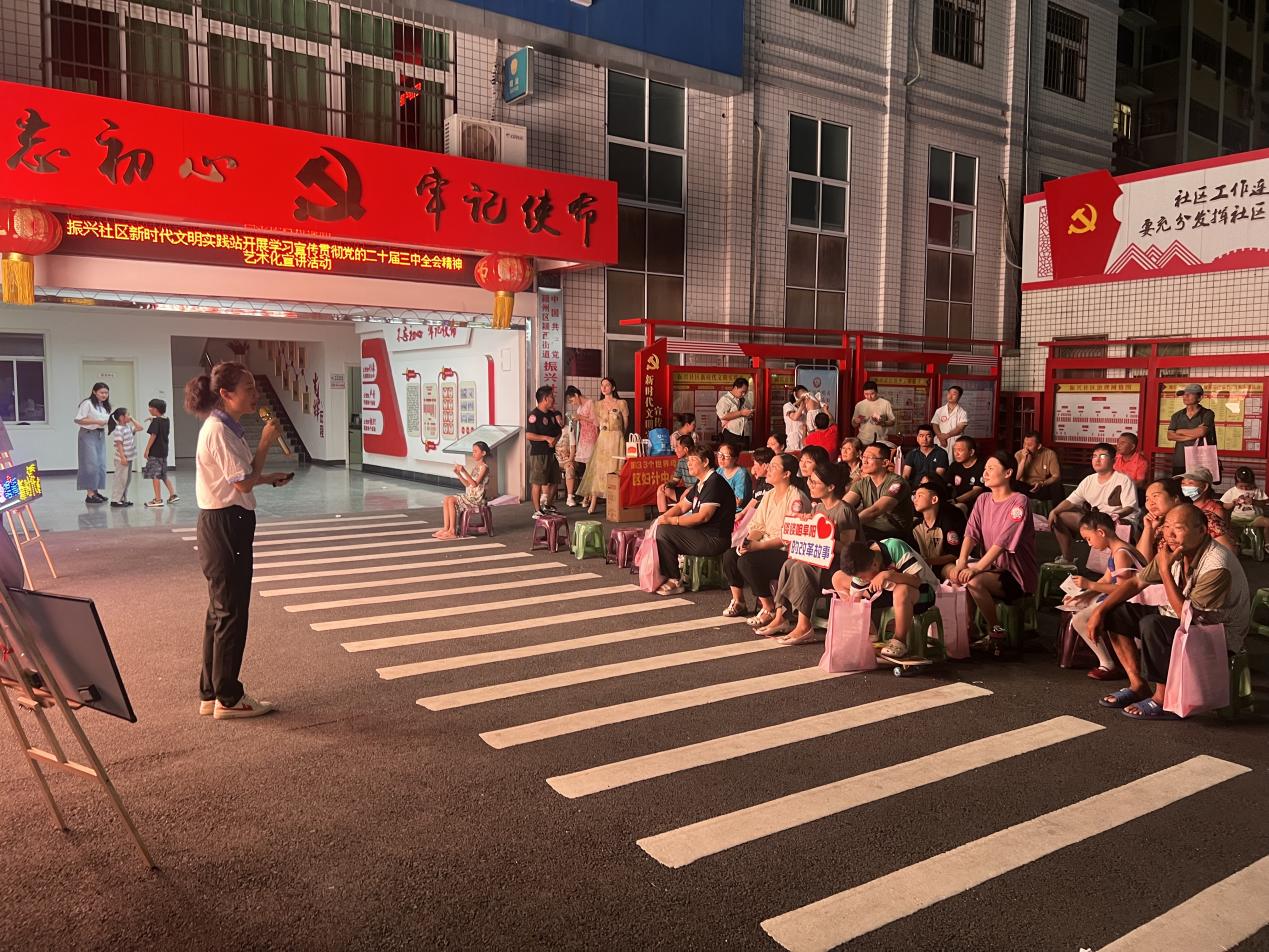 初心如磐踐使命,奮楫揚(yáng)帆啟新程,為全面貫徹落實(shí)黨的二十屆三中全會(huì)精神,深入學(xué)習(xí)貫徹習(xí)近平文化思想,不斷滿足人民群眾精神文化新需求、新期盼。8月4日,振興社區(qū)新時(shí)代文明實(shí)踐站開展學(xué)習(xí)宣傳貫徹黨的二十屆三中全會(huì)精神藝術(shù)化宣講活動(dòng)。