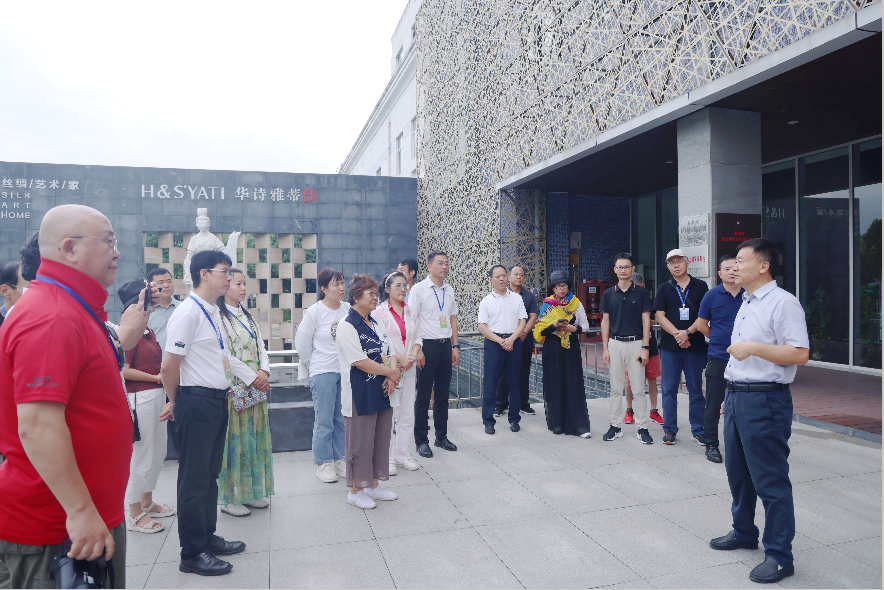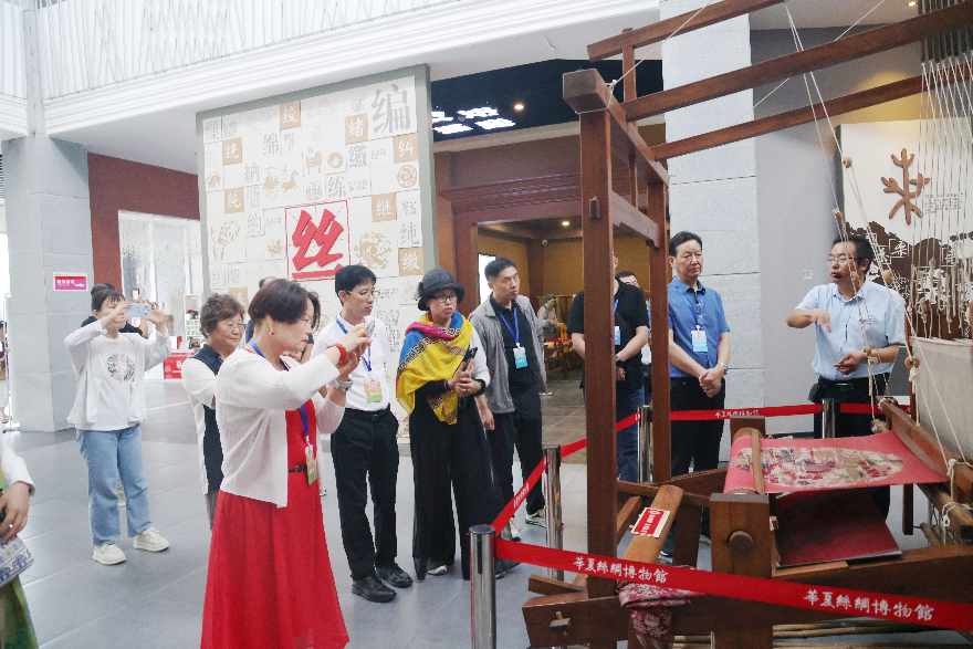 考察團參觀了安徽省華僑國際文化交流基地----華夏絲綢博物館,展廳中“桑、蠶、絲、帛”四幅醒目的甲骨文展板迅速把大家代入到悠久的古絲綢歷史。嫘祖始蠶、張弿出使西域、黃道婆傳道、鄭和下西洋等和絲綢有關的傳說史實,古絲綢之路的輝煌、辛追夫人“素紗禪衣”難以超越的制作工藝讓大家領略了博大的絲綢文化及精湛的絲綢制作技藝。在“綢畫”“帛書”等用絲綢開發的新產品面前,不住贊嘆絲綢工藝在科技賦能中渙發出的新的生機與活力。通過一場仿佛穿越時空的絲綢文化之旅,海外華文媒體的記者們不僅加深了對絲綢文化的認知和了解,同時近距離感受了潁州的魅力風采和發展變化。