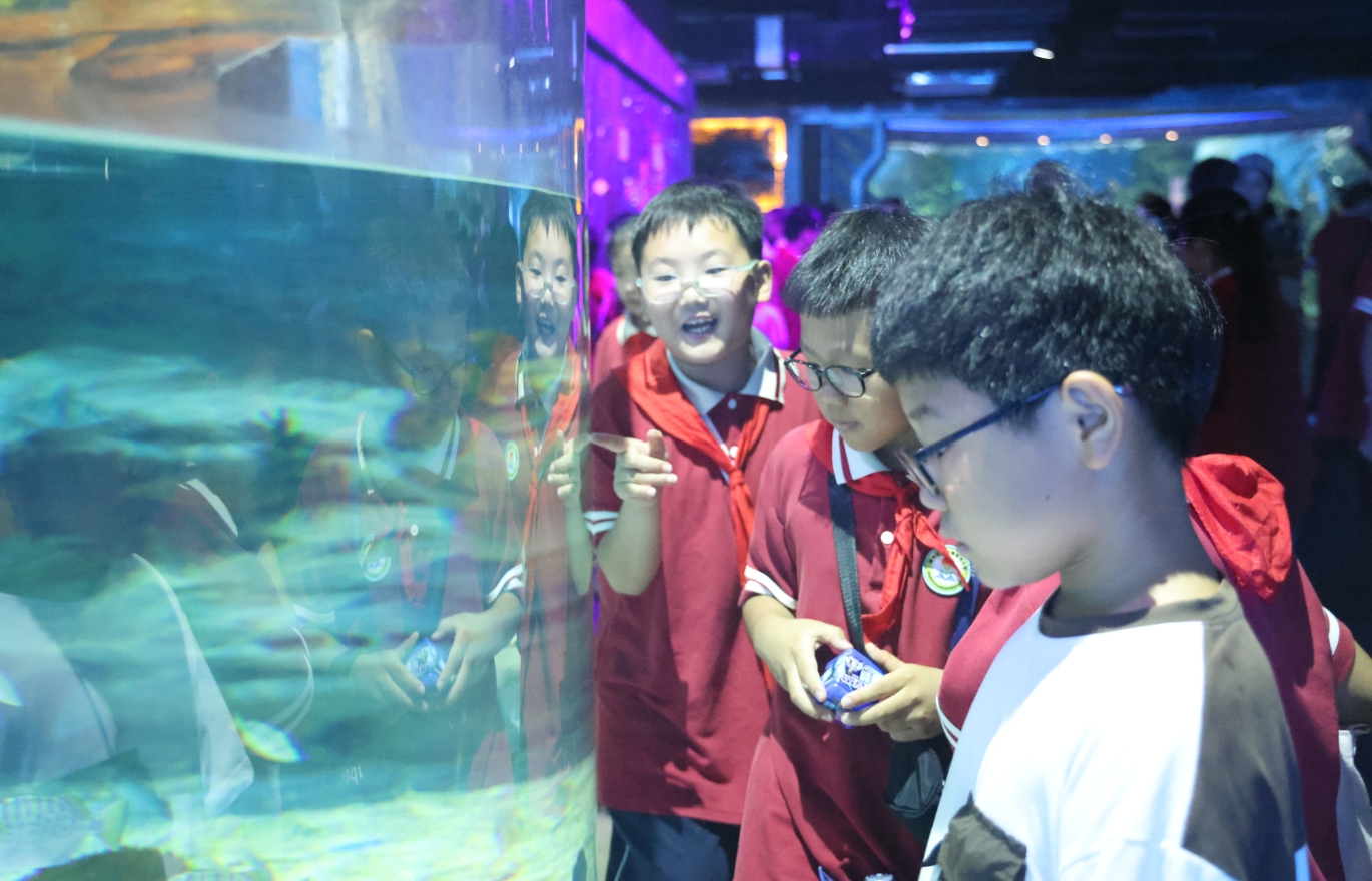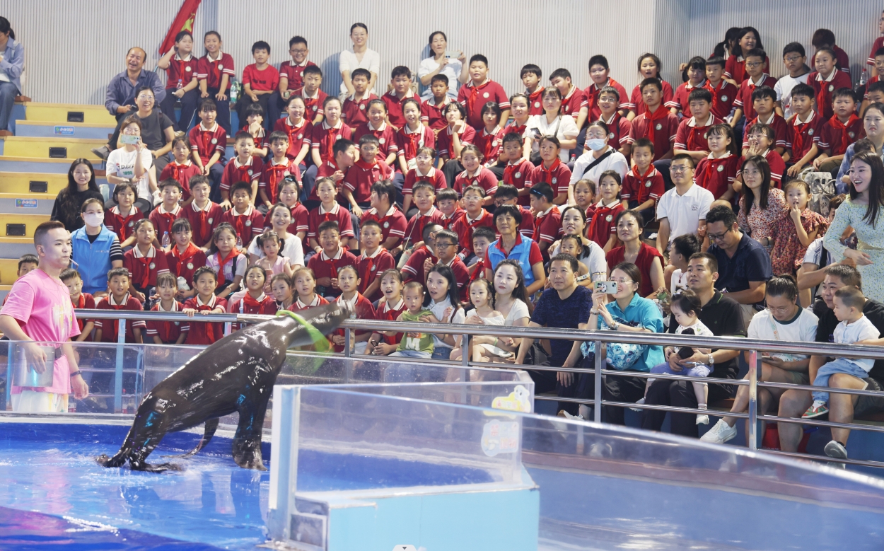 美味的午餐時間結束了,但是學生們愉快的一天還在繼續(xù)?!巴?,快看啊是鯊魚,還有魔鬼魚!”學生們剛踏進海洋公園就被各種海洋動物吸引了目光,興奮地與伙伴交流。學生們在海洋公園內觀看了海豹、海豚、美人魚表演,與海星、水母近距離接觸。表演結束后,學生們紛紛表示,這次海洋館之旅讓他們更加熱愛大自然,也更加珍惜與海洋生物共存的家園。
