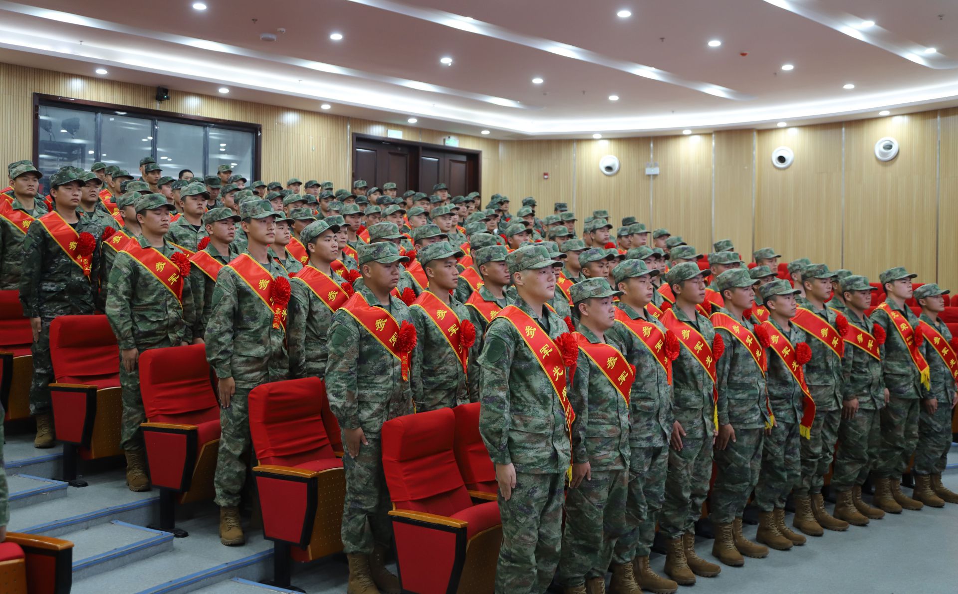 下午16時30分,歡送大會隨著雄壯的國歌聲拉開序幕。即將奔赴軍營的新兵們身穿嶄新的軍裝,佩戴“參軍光榮”綬帶和大紅花,個個軍容嚴整、斗志昂揚、英姿颯爽、坐姿端正。區人武部李潛宣讀了新兵入伍命令,新兵代表、補兵部隊代表分別進行了發言。新兵代表表示,到部隊后,一定安心服役,刻苦訓練,忠于職守,不辱使命,爭取早日成長為一名合格軍人。補兵部隊代表表示,一定會務實做好各項工作,確保新兵安全順利到達部隊。