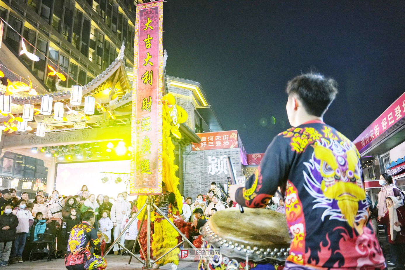 夜幕降臨,清河宋街的燈火被點亮,更增添了一抹喜慶祥和的氣氛。位于南廣場的大戲臺上,戲曲、舞龍舞獅、臨泉雜技等節目輪番上陣,為趕集市民帶來了一場精彩的文藝表演。古色古香的清河宋街還吸引了不少漢服愛好者慕名而來,他們身著漢服出游,成為一道道靚麗的風景線。