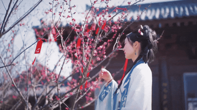 待到暖風拂面,早櫻飛揚,便著一身漢服,站在粉白色的櫻花樹下,看芳華,嗅花香,沉醉其境,奔赴這場浪漫的約會。
