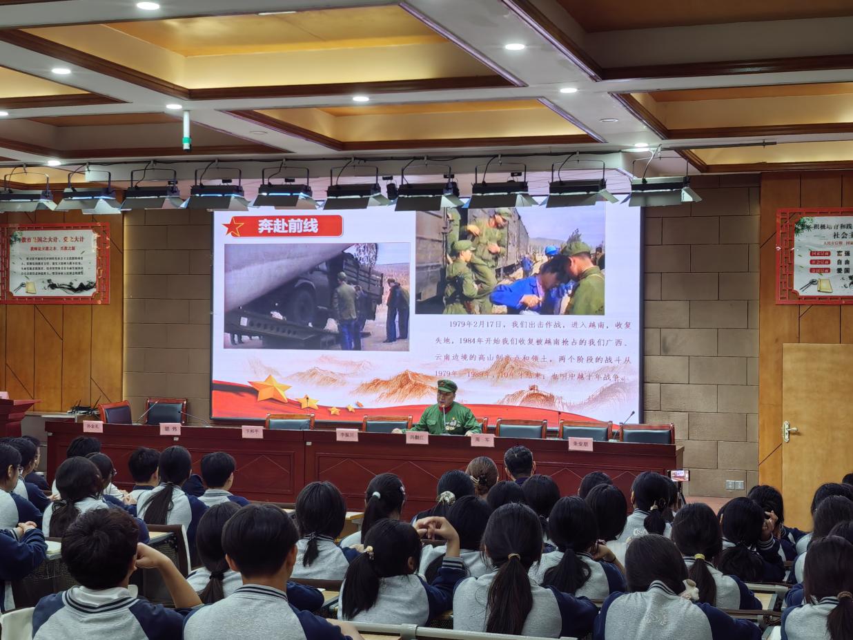 宣講中,馮翻江向與會師生深情講述了當(dāng)時戰(zhàn)友們英勇作戰(zhàn)的過程,回顧了與他并肩作戰(zhàn)、在槍林彈雨中為祖國英勇捐軀戰(zhàn)友們的英雄事跡。一個個感人至深的故事,一段段飽含深情的講述,讓全體師生為之動容、備受鼓舞,現(xiàn)場多次響起熱烈的掌聲。硝煙遠去,精神不朽。全體師生深切體會到革命戰(zhàn)士無私奉獻的精神,激發(fā)起同學(xué)們崇尚英雄、敬畏生命、熱愛和平,矢志奮發(fā)圖強、自強報國的家國情懷。